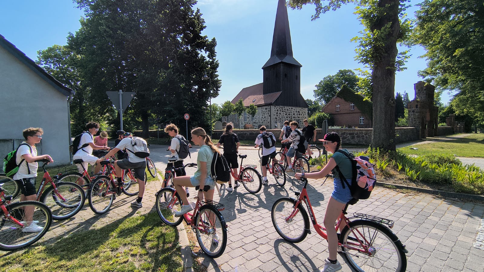 Der frühe Morgen gab bereits einen Vorgeschmack auf den glühend heißen Sommertag, der die Radler erwartete. Nach dem Frühstück gab es daher keine Zeit zu verschwenden. Die Strecke führte sie über Wustrau, vorbei am Neuruppiner See mit seinem Schloss und dem Brandenburg-Preußen-Museum, das – zur sichtbaren Erleichterung vieler Schüler – an diesem Tag geschlossen war. Weiter ging es rund um den See, mitten durch das idyllische Ruppiner Land, wo die Sonne erbarmungslos auf den Helm brannte und der Fahrtwind wie Heißluft aus einem Fön wirkte. Nach mehr als 20 Kilometern erreichten alle endlich wieder erschöpft das Jugenddorf.