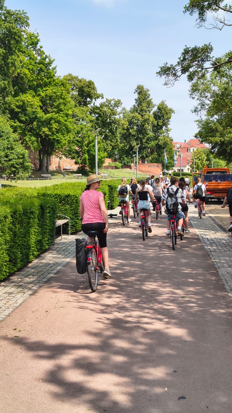 Ein großes Kompliment gebührt Frau Thomaß und Herrn Rohrmann, die diese Tour nicht nur organisiert haben, sondern auch mehrmals tapfer mitgeradelt sind. All das machten sie mit einer Ruhe, als seien sie Teil der Verkehrspolizei. Selbst diejenigen, die lieber in Zweierreihen nebeneinander statt hintereinander fuhren oder unterwegs „kurz mal Pause“ machten, hatten sie stets im Griff.