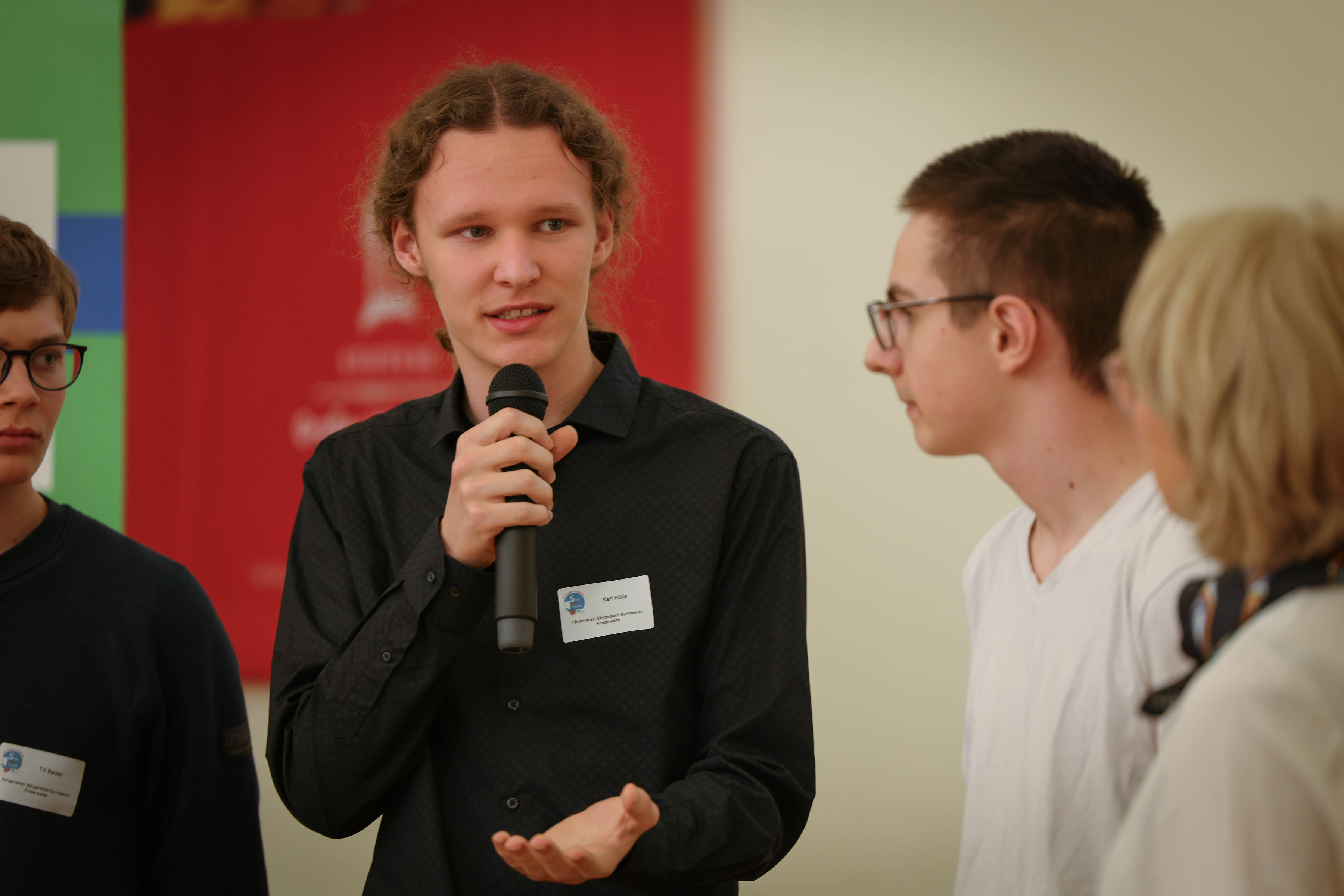Till Balzer und Karl Hülle konnten zusammen mit Niclas Eisenbarth bei der Preisübergabe im Friedenssaal des „Großen Waisenhauses zu Potsdam“ am 29.03.2025 dabei sein. In festlicher Atmosphäre und mit einem unterhaltsamen Rahmenprogramm mit Musik und Live-Acts übergaben die Jurymitglieder die Preise. Niclas präsentierte eine Showeinlage, indem er wie Michael Jackson tanzte. Nach der Preisverleihung wurden wir zu Snacks, Kaffee und einer Geburtstagstorte eingeladen.